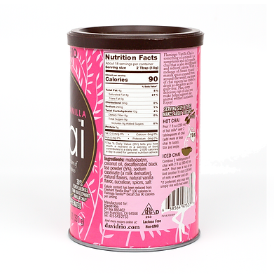 Flamingo Vanilla Decaf, een Chai gebasseerd op de Elephant vanille smaak. Maar dan zonder suiker en aangevuld met Splenda, de ideale vervanger voor suiker.
